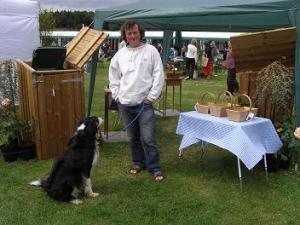 Our humble little corner – that’s my hubby and dog looking rather lugubrious (or is that just embarrassed?). We sold quite a few of those nice oak boxes and got lots of interest in the garden storage solutions. Quite a hot topic at the moment, it would seem (all the better for our bank account, then).