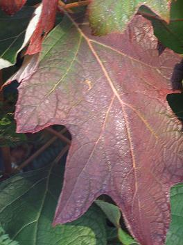 I planted this Hydrangea quercifolia a couple of years ago and it’s becoming well-established now. I bought it for the shape of its leaves, but look at that brooding purple colour, too.