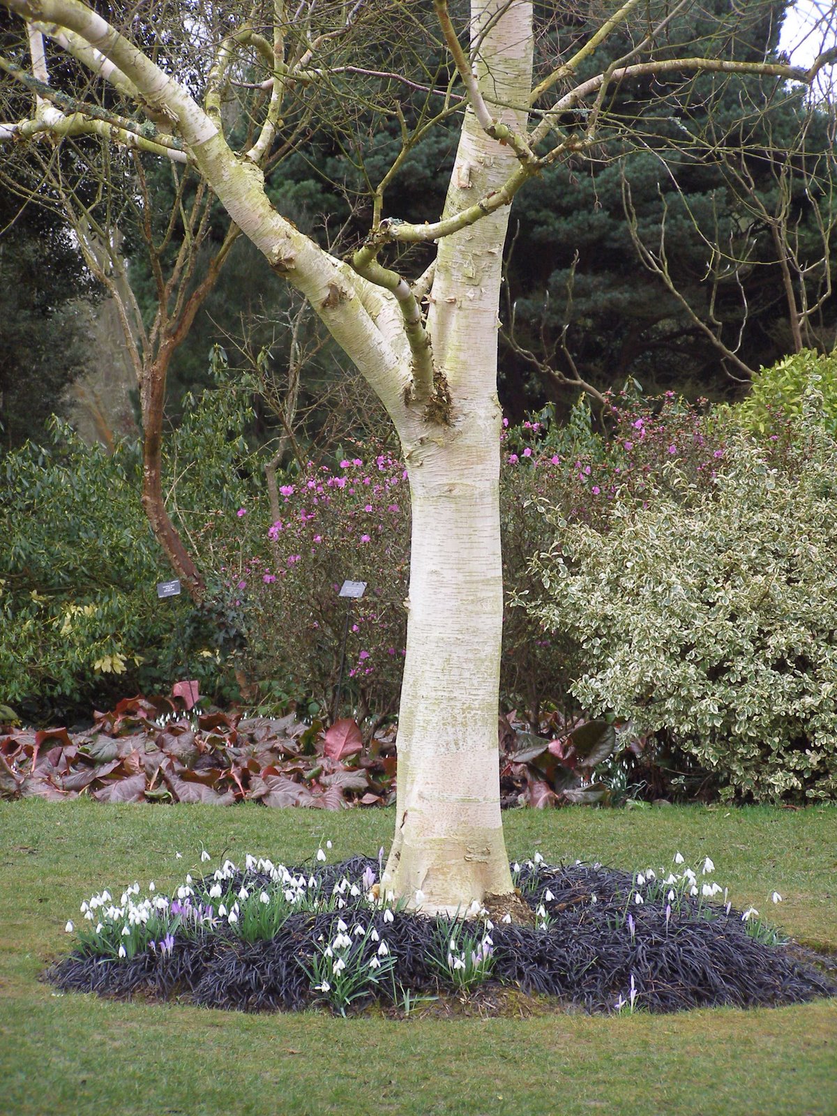 Betula utilis, Ophiopogon planiscapus ‘Nigrescens’, and Galanthus nivalis. A little island at Wakehurst Place earlier this month: perhaps the black-and-white snowdrops-and-lilyturf thing is becoming a tad clichéd nowadays but I don’t care. This looked fabulous.