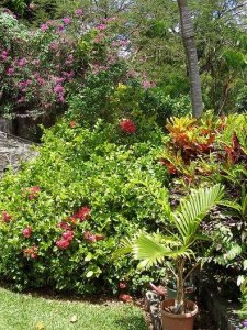 alocasia, bougainvillea, Colocasia, crotons, ginger, Grenada, heliconia, philodendron, tropical