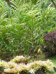 I loved this group – a huge torch ginger, around 30ft or so high, with those bright bromeliads flowing across the ground in front. There were blooms like fat orange tulips coming up, rather wierdly, straight from the ground among those huge great stems, too.