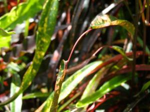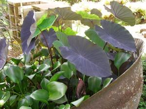 Now these are definitely alocasias. Or maybe colocasias. They’re all over the place in Grenada – they eat the leaves of colocasia (a bigger-leaved variety than this one, if it is colocasia, which I doubt) like spinach, and call it callaloo.
