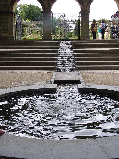 …and the way this fountain pours down the steps from the European Garden at the top.