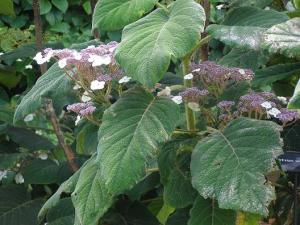 And last but not least, I discovered this extraordinary hydrangea. It’s H. sargentiana, with giant leaves the sultry rough green of old velvet and flowers the slate-purple of a thundery afternoon. Big and moody: I loved it.