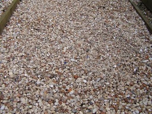 This is the first patch we did, by the greenhouse, which if you ask me looks just like 10mm pea shingle. But look a little closer…