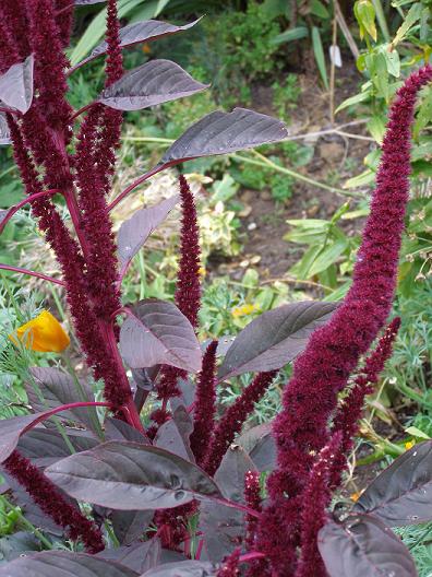 The species is the key: they’re a paniculatus, not caudatus, and this means they’re upright. And I do mean very upright: they’re currently marching through my borders like so many purple soldiers, waving those plum-coloured pipecleaners aloft: sometimes straight upwards in tufts like eccentric feather dusters, and at other times sending up individual spires which twist bewitchingly in all directions.