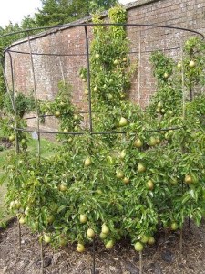 I’m a bit sceptical about cage training – can’t see how you’d keep the air circulating around the centre of the fruit tree, and if you can’t do that it’s a recipe for fungal disease – but I’m willing to be convinced, and it sure does look pretty.
