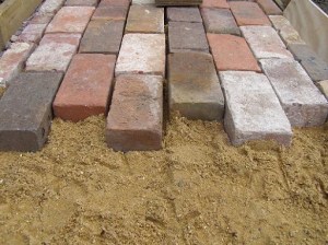 Step 9: level the sand and dry-lay the bricks, making sure they’re level in every direction – I put a gentle camber on mine from one side to the other to drain the water off.
