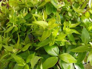 Browsing around the garden centre I could only see variegated abelias with leaves in bilious shades of mottled pink and cream which rather put me off. But luckily in a corner there was a little shrub with vibrant non-variegated yellow leaves: promising, except abelias are known to be pink, and yellow leaves with pink flowers is the combination from hell (hide your head in shame, Spiraea japonica ‘Goldflame’). On closer inspection, though, the label says the flowers on this one are white: and what’s more it has “bronze-gold” leaves in autumn. Mmmmm…. sounds lovely.