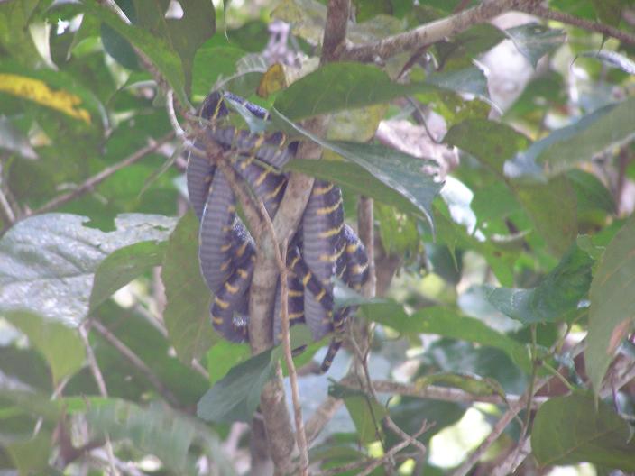 Yes, it is. Six feet long and only ‘mildly’ venomous. These mangrove snakes were not only hanging over our heads in trees in a mildly terrifying way but also slithering around among our riverside huts. Oh yes, and there were pythons too. And crocodiles in the river.