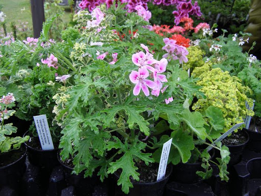 As it was, I came away with P. ‘Ardwick Cinnamon’ (white flowers, leaves the scent of cakes in autumn), P. ‘Cy’s Sunburst’ (variegated gold with a lemony fragrance) and the intriguingly curly-leaved P. graveolens ‘Bontrosai’, with a perfume of roses. I always said I wouldn’t start collecting plants, but I fear I may have succumbed.