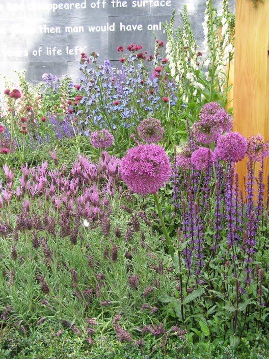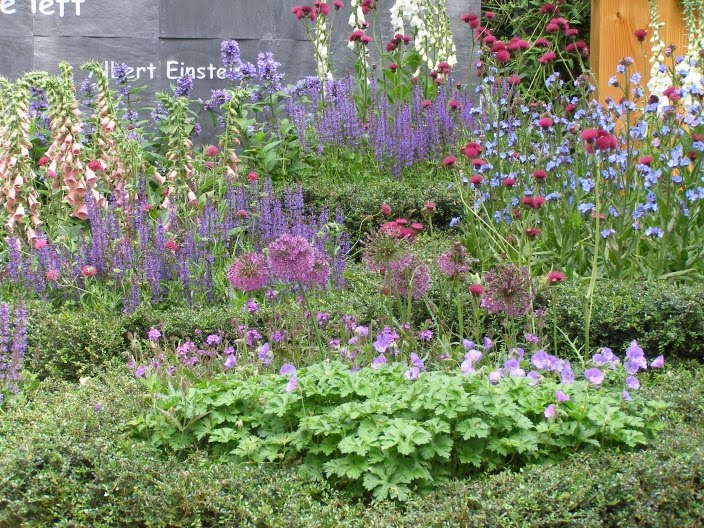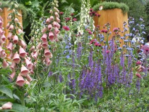 One of my very favourite small gardens: the Global Stone Bee Friendly Plants Garden, designed by Janey Auchincloss and Paul Hammond. I’m not entirely sure why it ‘only’ got a silver: the planting was delightful and there were some great ideas – a crinkle-crankle box hedge, a funky multi-storey herb garden and a sunken centre leading to a fountain. Janey’s friend tells me they got marked down because of the fountain was too high, which seems a bit rough.