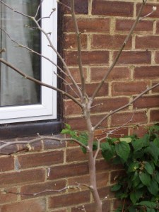 Now my only dilemma is what to do. The obvious is to prune out the top growth and shorten that long branch so it’s all in proportion again: I suspect she’ll end up rather multistemmed, but that may be an advantage.