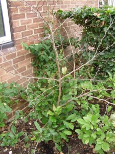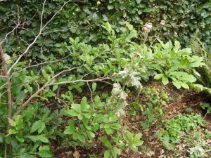 Now my only dilemma is what to do. The obvious is to prune out the top growth and shorten that long branch so it’s all in proportion again: I suspect she’ll end up rather multistemmed, but that may be an advantage.
