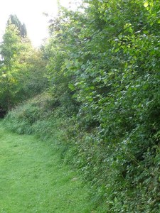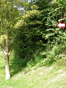 Elsewhere in this section: this is a quarry, which has the great advantage of being superbly sheltered, and the rather daunting prospect of very high chalk banks at either side. Where the arrow is – that’s just about where the bank stops and the hedge starts. The top of the hedge is another 8ft or so above that. We are thinking scaffolding.