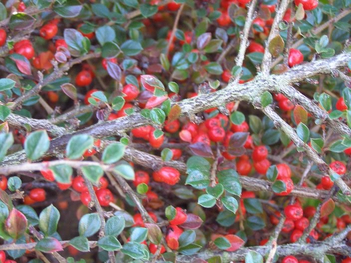 The plant life is little more than overgrown shrubs: some are quite nice. This cotoneaster is in very full berry…