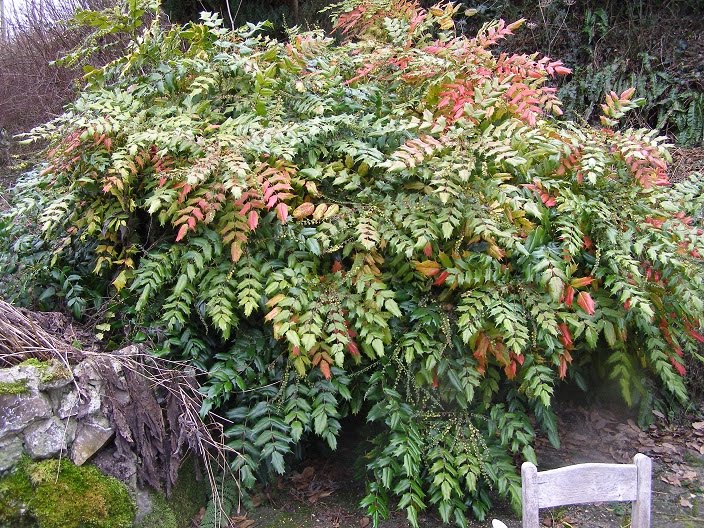The mahonia which grows here is a very fine specimen and has given me something to look at all winter, for which I’m grateful. I’m wondering whether to raise the crown on this one, however, and see if I can grow something underneath: I have fond memories of a mahonia tree in a client’s garden I used to look after and would dearly love something like it myself. Wonder if this one can be persuaded…?
