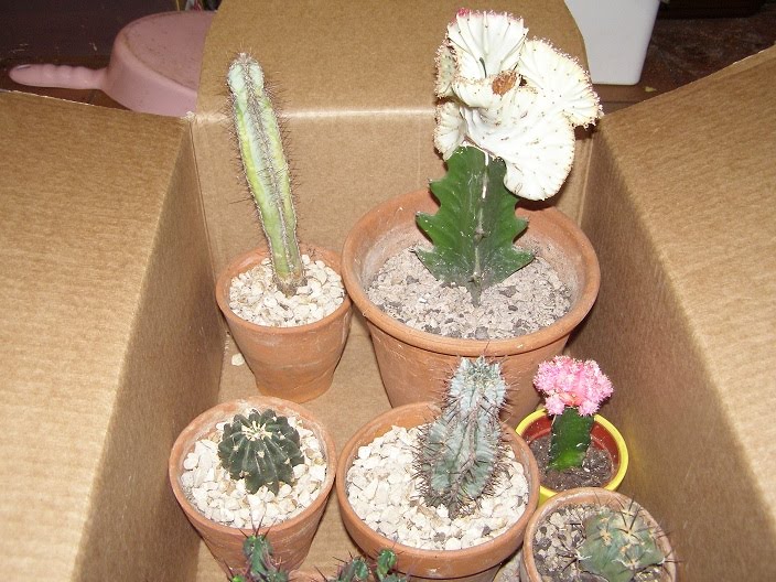 Three boxes of them plus a few loose ones; over 20 cacti of varying shapes and sizes, the largest up to your knees, the smallest the size of your thumb. And I hate the lot of them.