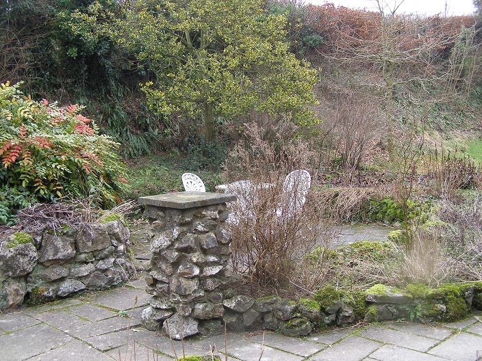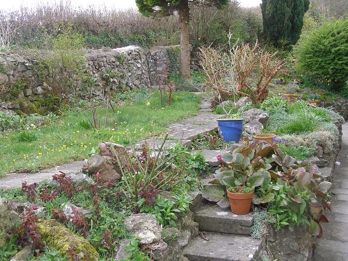 Here’s the rock garden, or rather the herb garden to be. Nicely trimmed these days: and I’ve started placing a few pots of bits and bobs around the place ready to be planted.