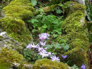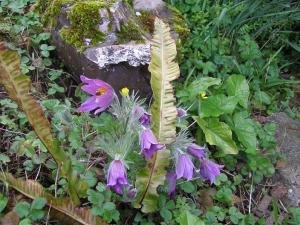 There’s also plenty going on here quite independently of my own feeble efforts to spruce things up. Little pretties keep popping up all over the place. I keep stopping in my tracks on the way out of the house: the other day it was because I spotted a clump of pulsatilla. Pulsatilla! In my garden!