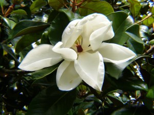 Magnolia grandiflora bursting into massive flower