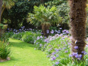 Here, Melianthus major grows into spreading thickets, fountaining dark bronze flowers; Echium pininana sends huge spires into the sky; and you’re forever finding tender-ish plants you adore but never previously knew existed. Firmiana simplex, the Chinese parasol tree, was my discovery for this year’s visit: huge, foot-across dinnerplate leaves of an exquisite fresh green.