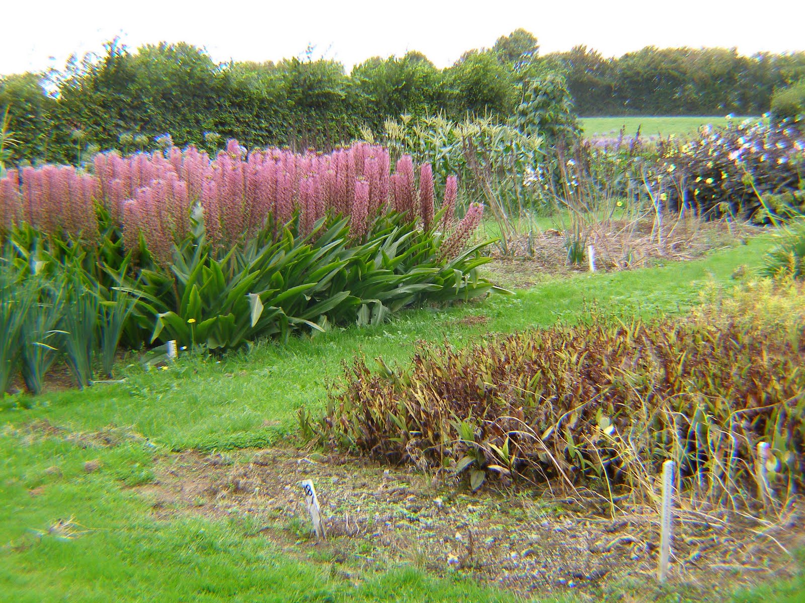 The stock beds are long, thin strips cut out of a field, punctuated with high wall-like hedges to absorb the wind. It kept reminding me of my old allotment; except here the crops are bulbs, bulking up in great blocks of foliage and flower.