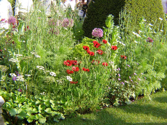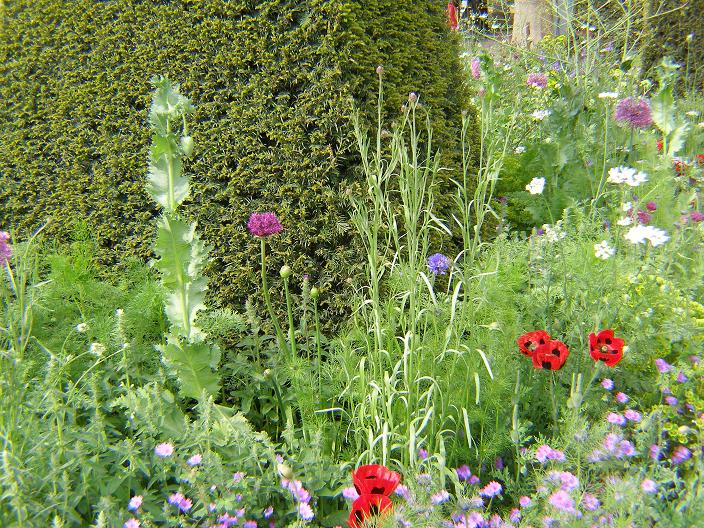 And the planting… It was vintage Cleve: romantic, beautifully judged, passionate. Soft umbels, little fireworks of green and sparkles of white valerian over a froth of Geranium pyrenaicum ‘Bill Wallis’ (one of my own favourites – I have it gambolling about my garden and adore it with a passion). And all lifted with just the perfect splash of ravishing scarlet here and there from dancing ‘Ladybird’ poppies.