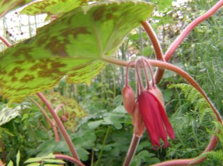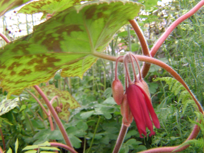 I adore podophyllums – big, blowsy foliage plants and as this one shows, no slouch on the flowering front either. ‘Spotty Dotty’, a cross between P. delavayi and P. difforme, is one of the most colourful with its generous brown-spodged leaves.