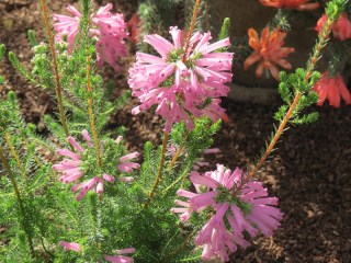 | An intriguing heather from Trewidden: don’t you just love the way the stems carry on up out of those huge blowsy flowers? It’s Erica verticillata – and 70s and boring it ain’t |