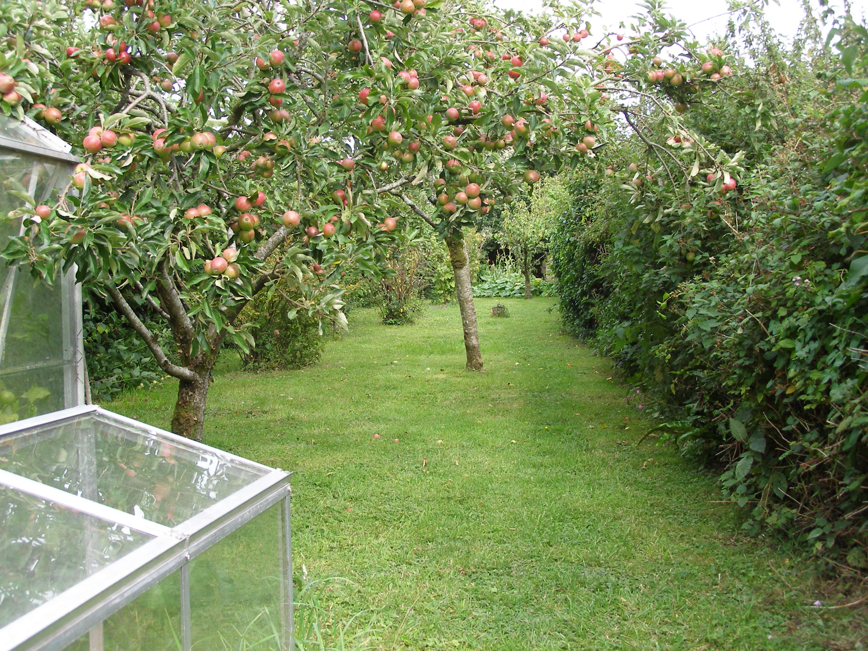 The veg plot was a long, thin lawn between looming hedges when we moved in. Very neat, very pleasant, very dull. There were four fruit trees: the remains, I think, of an orchard but sadly clogged with lichen and moss, the air still and heavy inside the bulging, overgrown hedges that left a narrow strip just 8ft wide down the middle.