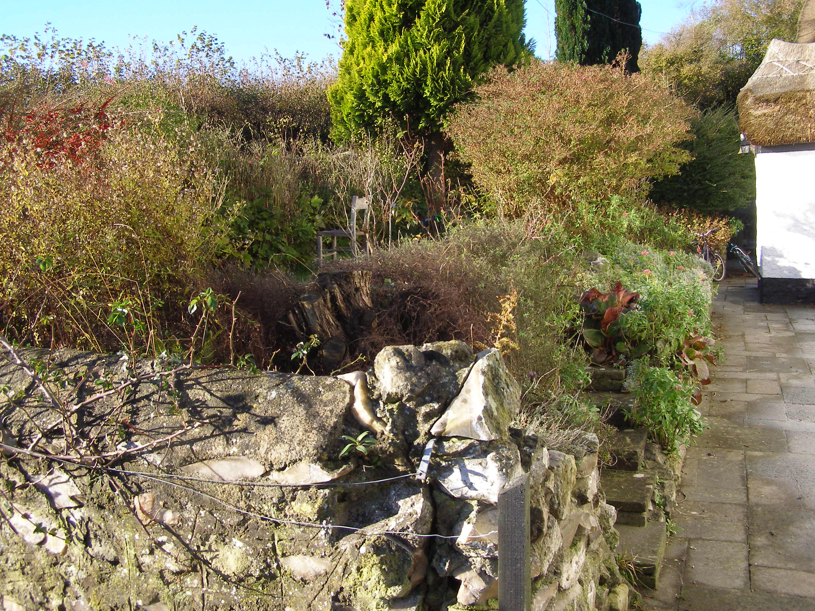 The herb garden, once a rockery, always scruffy at this time of year: and I must do something about the bronze fennel, which is a magnificent plant but is reaching forest proportions. Editing out around half of the clumps should do it.