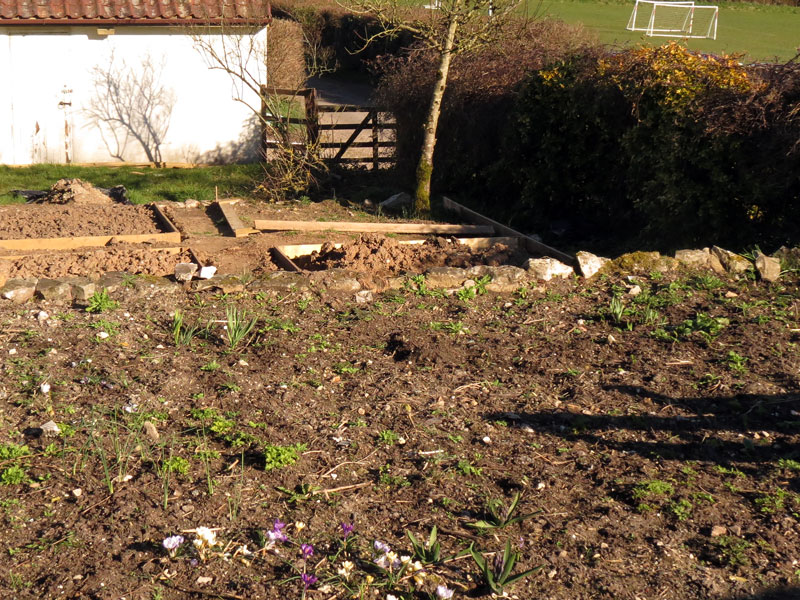 This is my little meadow area at the top of the terraces. It doesn’t look very inspiring at the moment – there are some crocuses and hyacinths and a few old gold heritage daffodils on the way but I’ve only just begun to build up the bulbs quotient so a few years to go yet till it’s the sheet of spring colour I have in my head.