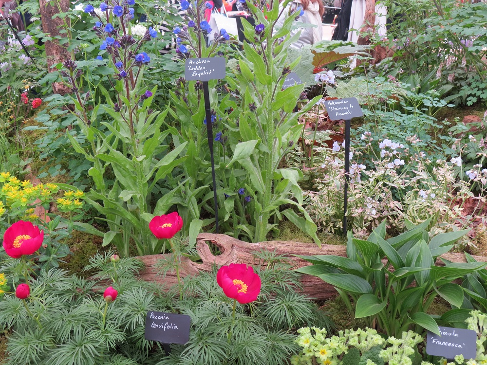 I can’t believe quite how much goes into putting these stands together. Every plant position was agonised over, changed and changed back again. Tiny bits of polystyrene tip pots a little forward to show off a plant that bit better: a ten-degree turn to the left and every leaf is just where it should be. The camassias, stubbornly in bud on arrival, were ferried off to a friendly greenhouse display for extra warmth in the hope that they’d come good in time (they didn’t). The Paeonia tenuifolia was feverishly checked every ten minutes to see if that promising flowerbud was going to fully ‘pop’ (it did).