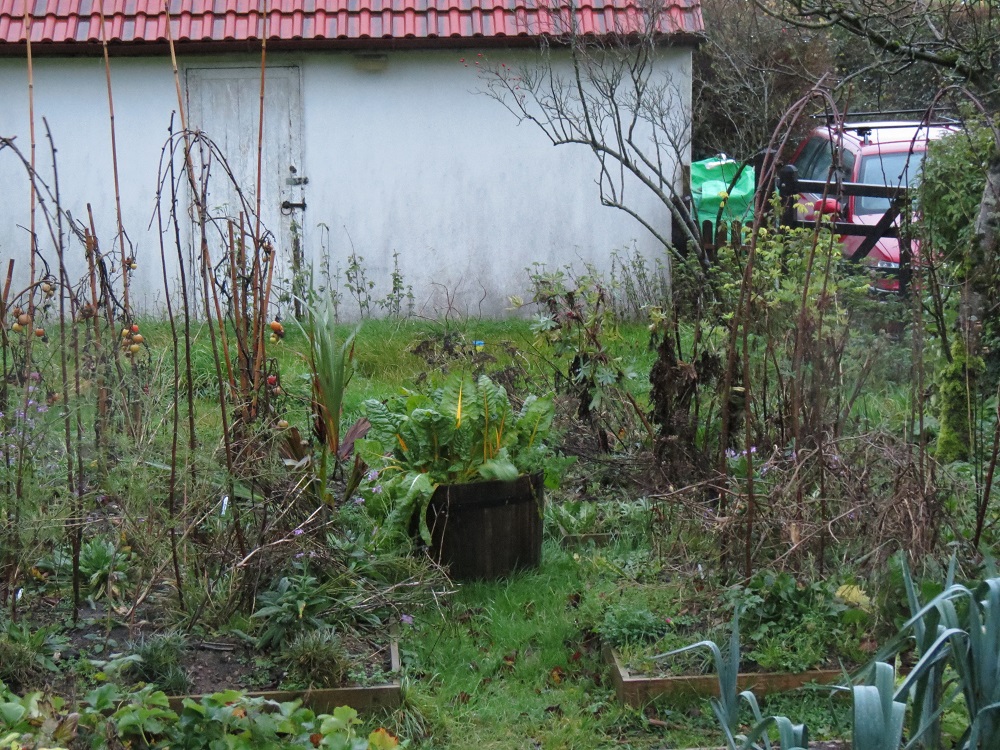 The veg garden is looking exceptionally woolly and wind-blown at the moment as it subsides gradually into its winter hibernation: good sprouts under them nets though