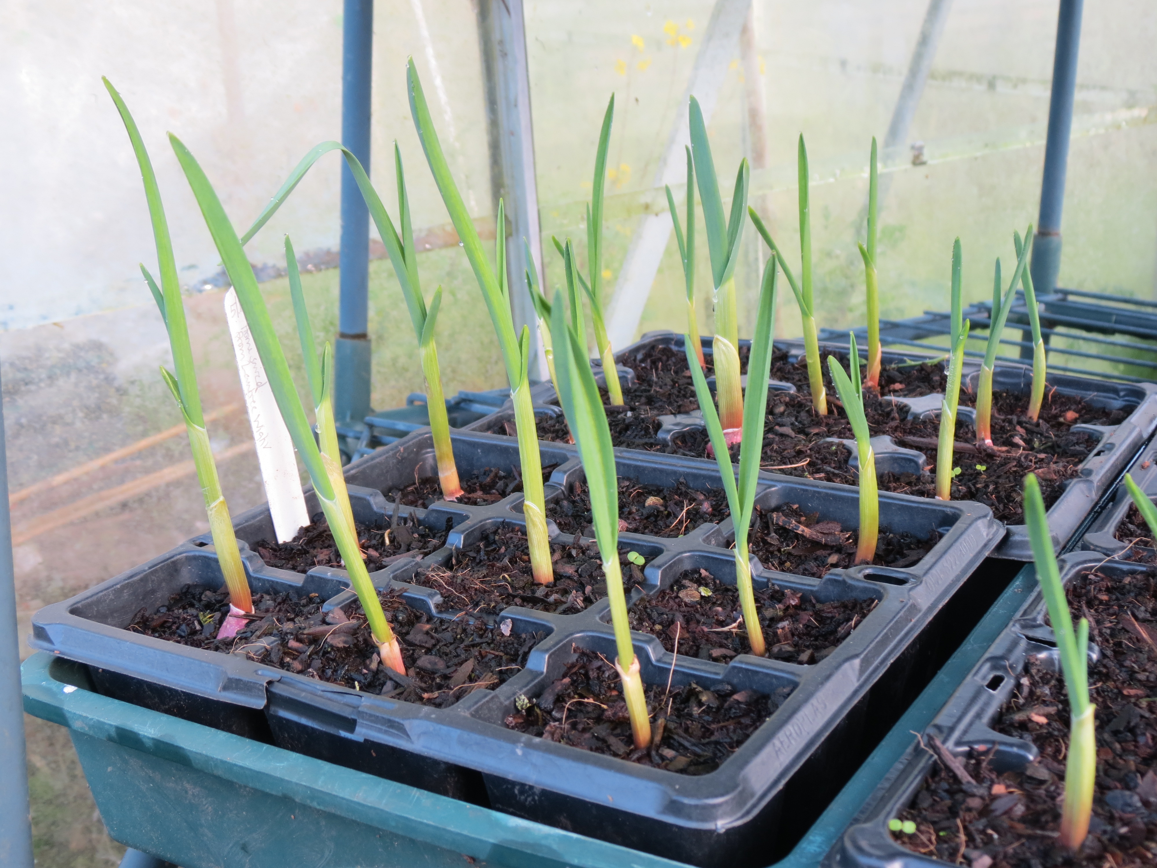 Planting garlic: I have had my little garlic cloves growing away in a module tray since I sowed them in November, and now they’re bursting out of the drainage holes in the bottom so I think they can go into the ground. These are the cloves I saved from the plants that held out for longest against garlic rust last year: with luck, they’ll have a smidgen more resistance this season and I might have half a chance of actually eating some.