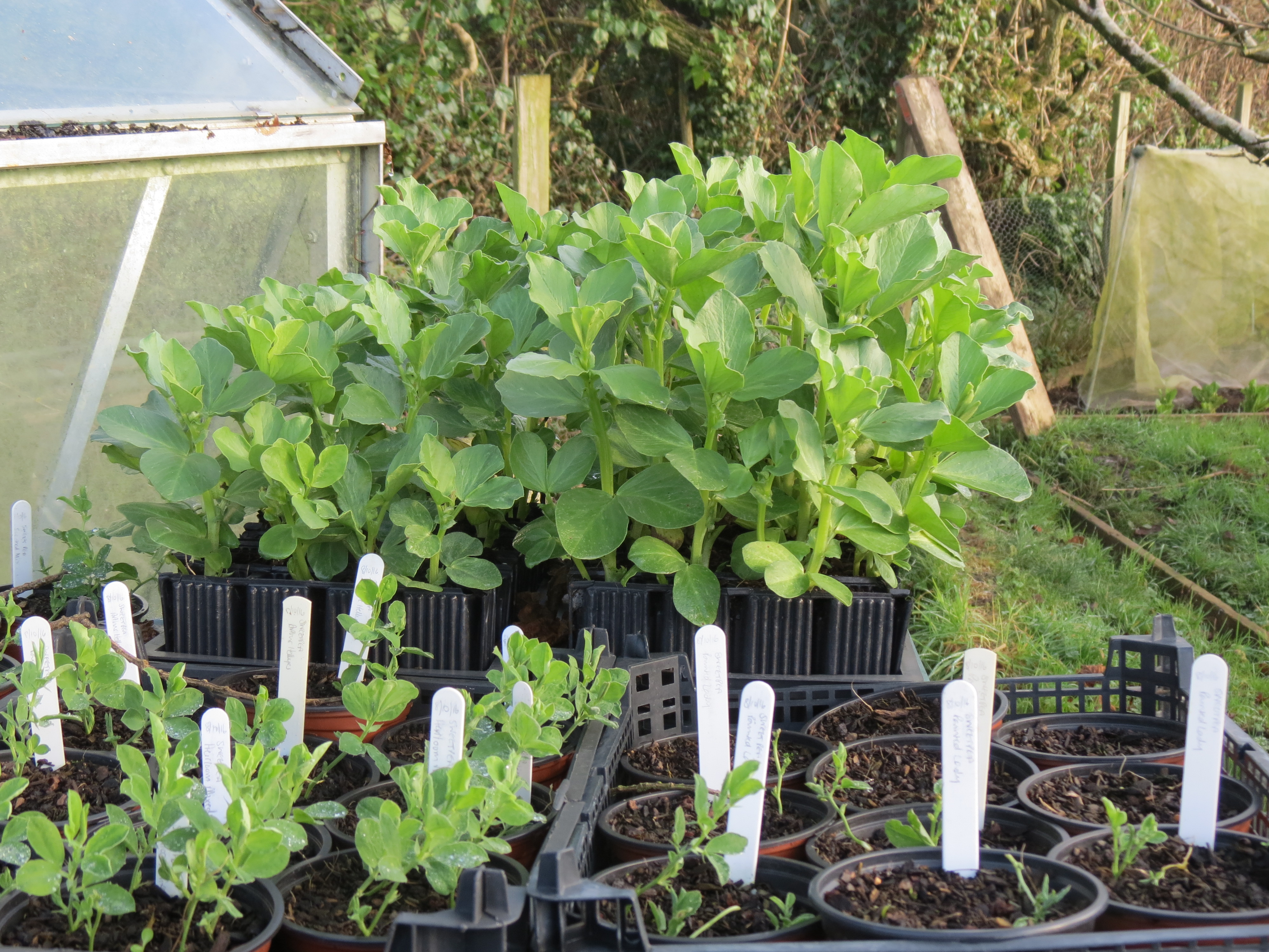 I left my overwintering broad beans and sweet peas outside this winter and they’re doing much better, far less leggy than usual – so as I suspected, it pays to grow them hard.