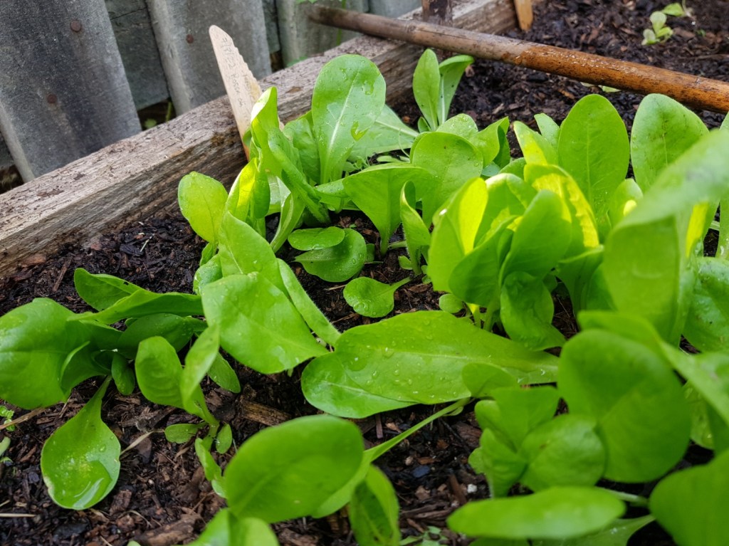 - ‘Red Frills’ mustard sown direct – this has grown much faster than everything else and is prolific but delicious. I can’t quite keep up with the harvest so I chop it back occasionally and add what I can’t eat to the compost heap.
