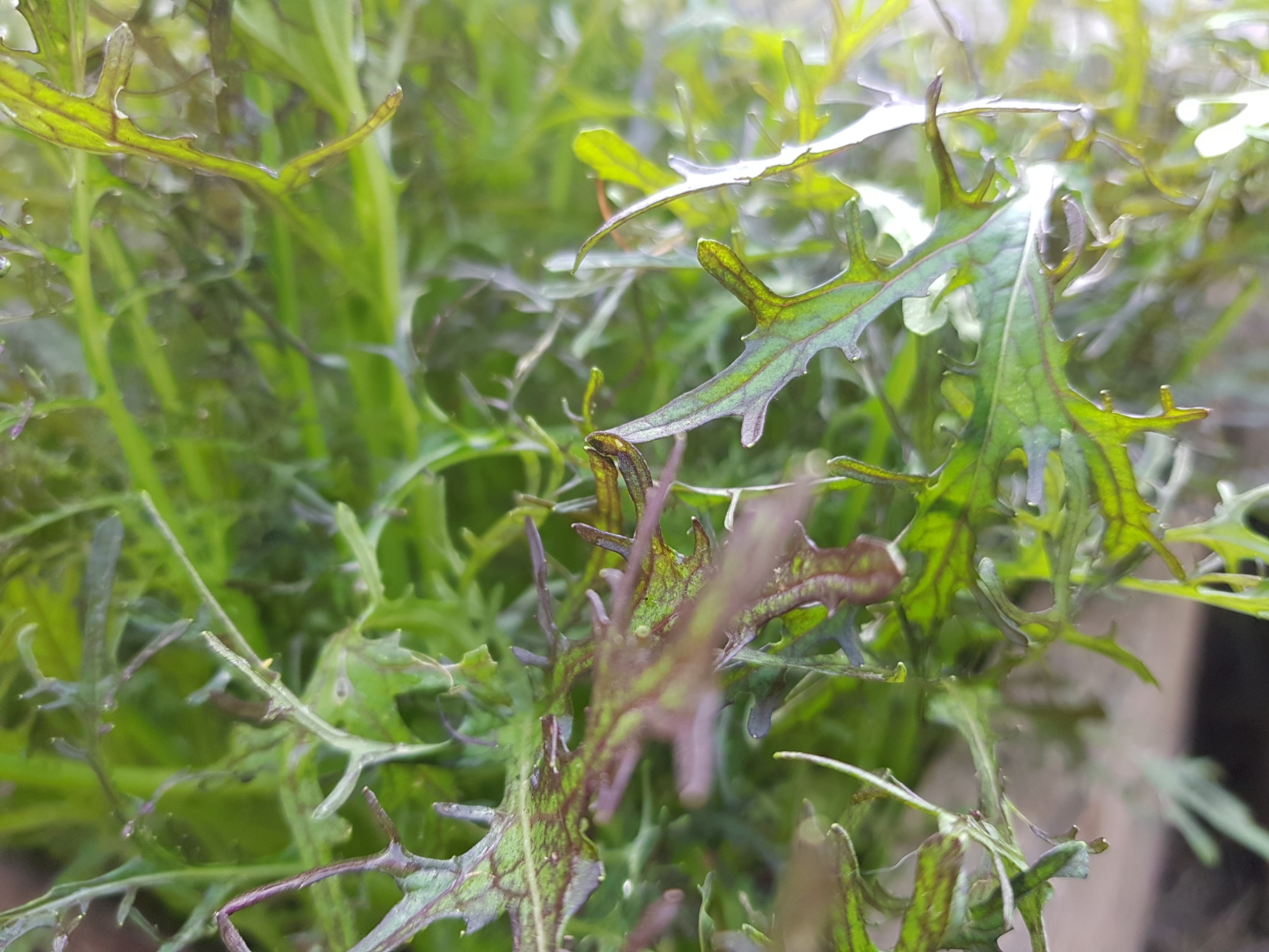 - ‘Red Frills’ mustard sown direct – this has grown much faster than everything else and is prolific but delicious. I can’t quite keep up with the harvest so I chop it back occasionally and add what I can’t eat to the compost heap.